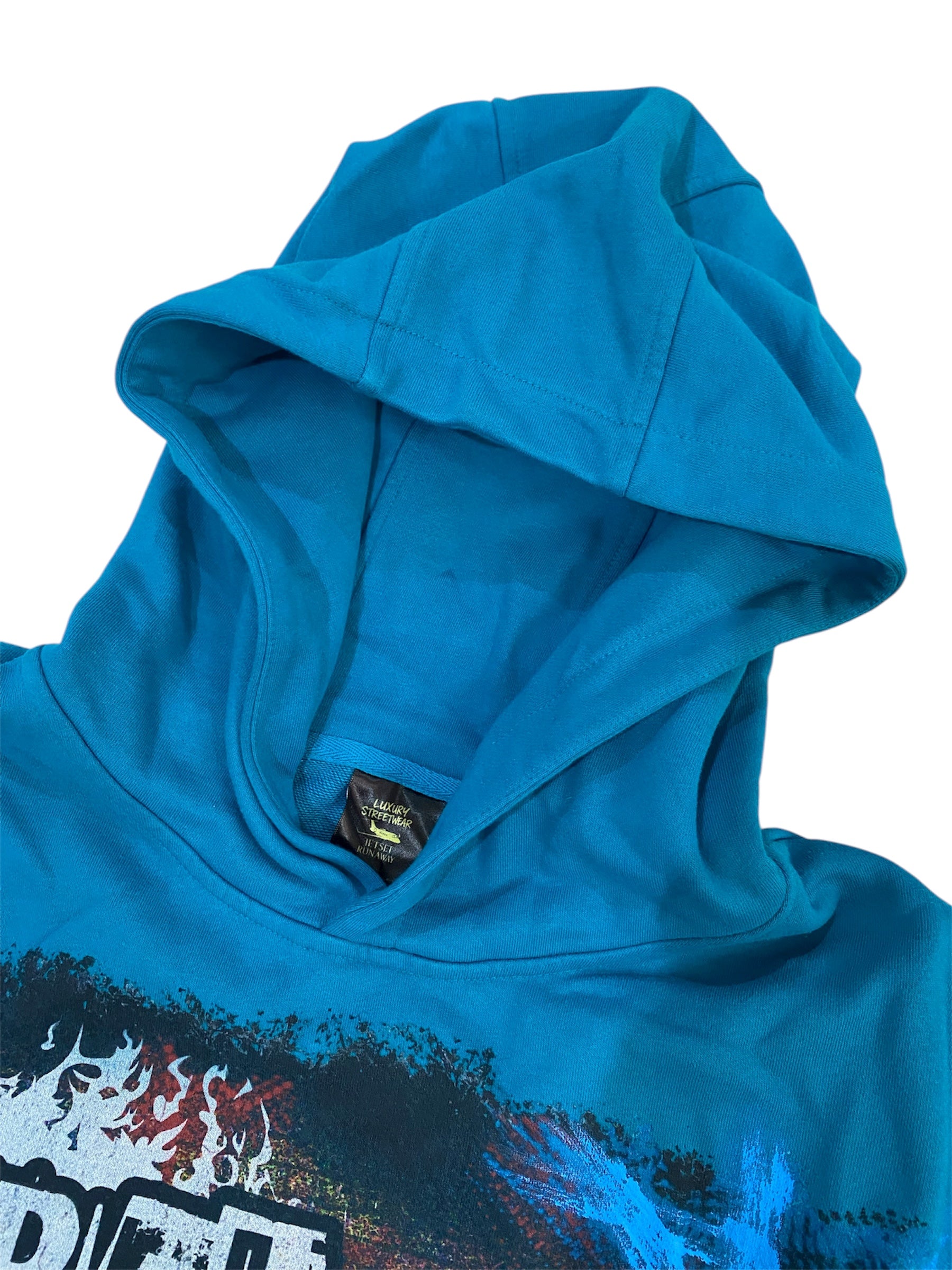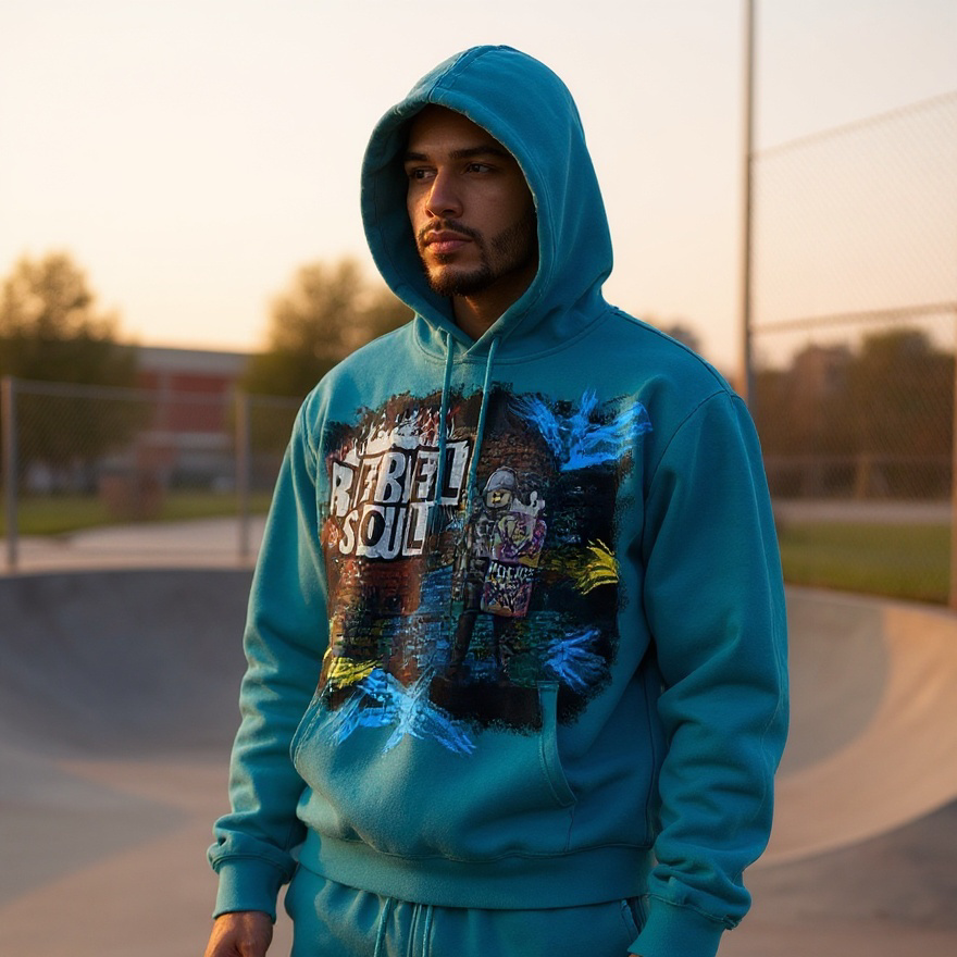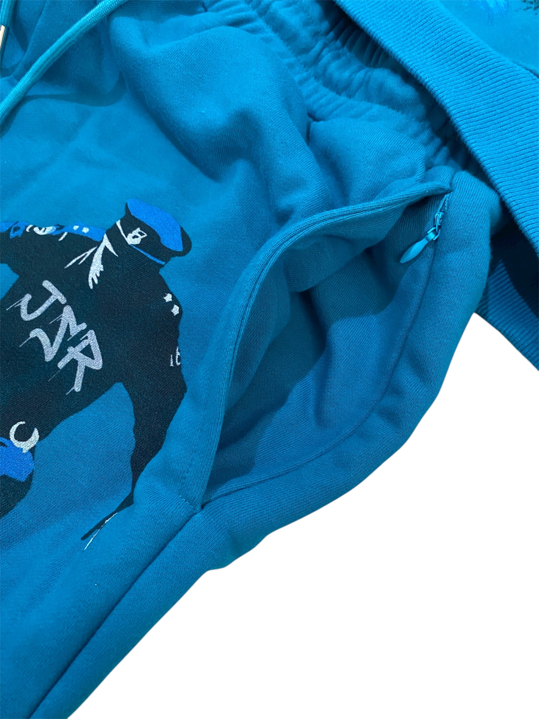 The top features an oversized DTG graphic with hand-painted accents, giving each piece a unique artistic finish. The matching pants include a bold DTG graphic, hand-painted details, and a concealed zipper pocket hidden seamlessly along the side seam for secure storage.
